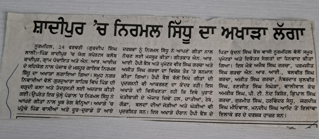 ਪਿੰਡ ਸ਼ਾਦੀ ਪੁਰ ਵਿੱਚ ਪਿਛਲੇ ਦਹਾਕਿਆਂ ਵਿੱਚ ਹੋਏ ਕੁਝ ਪ੍ਰੋਗਰਾਮਾਂ ਦੀ ਝਲਕ